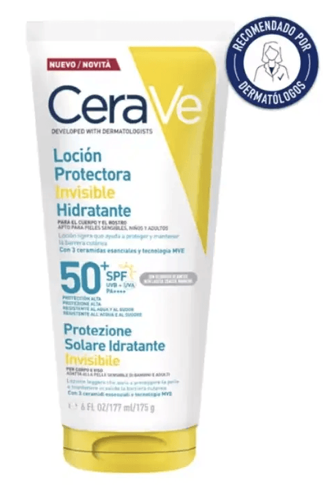 O protetor solar CeraVe invisível hidratante SPF 50+ (177ml) oferece uma proteção muito elevada contra os raios UVA e UVB. A sua textura leve é rapidamente absorvida, deixando um acabamento invisível, ideal para o uso diário.